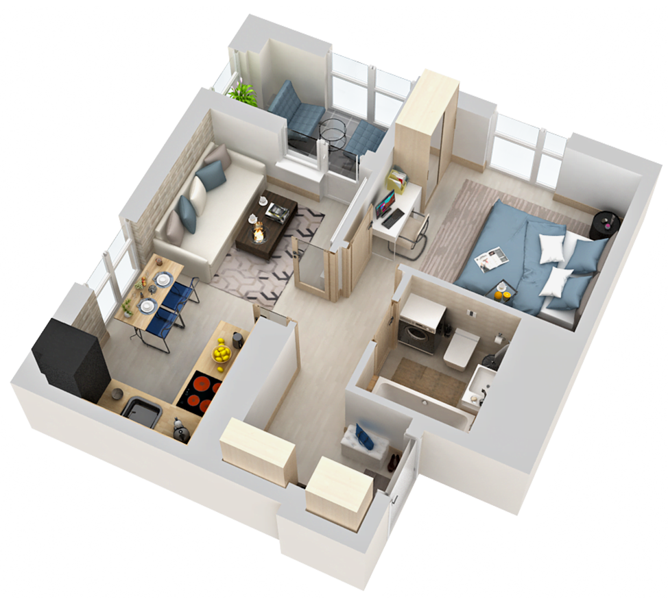 Комплекс многофункционален за счет размещения в нем разнообразных единиц: квартир, апартаментов, офисов, магазинов и коммерческих помещений для сервисов и услуг, что позволяет жить, работать, отдыхать в одном месте, а так же повышает эффективность использования городского пространства.